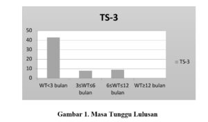 - Alumni tahun 2023 memperoleh pekerjaan setelah lulus dalam waktu tunggu kurang dari 3 bulan sebanyak 43 lulusan. Sedangkan untuk waktu tunggu 3 bulan sampai kurang dari 12 bulan sebanyak 8 lulusan dan waktu tunggu 6 bulan sampai kurang dari 12 bulan sebanyak 9 lulusan. Gambar 1 yang menunjukkan masa tunggu lulusan.