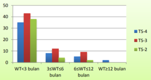 bulan, dan hanya 2 lulusan (1,3%) yang membutuhkan waktu lebih dari 12 bulan. Data ini