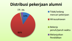 maupun paruh waktu. Sebanyak 15 alumni (9,5%) menjadi wirausahawan, sementara 2